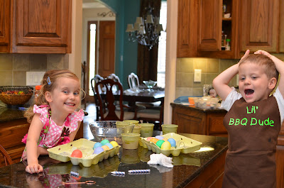 Easter morning arrived with baskets of goodies lined up on the stairs. Mal was beyond excited to receive Tangled on DVD. She's been heartbroken ever since Netflix removed it from their instant video list. Jake's movie was Rio, which they seem to like after watching it yesterday. He also loves the kangaroo that came with his book & named it Rio. Yes, we're very original.